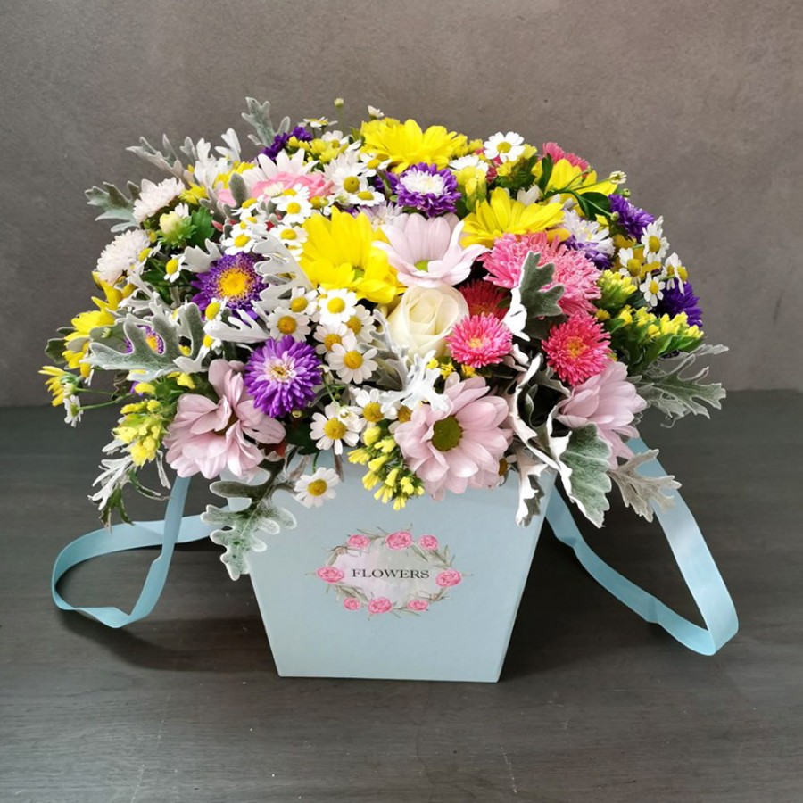 Our bouquet of seasonal flowers with a box design is a stunning celebration of nature’s finest blooms. Carefully selected for their freshness and vibrancy, the flowers are arranged in a stylish box that adds a touch of elegance to any occasion. From the rich hues of autumn to the soft pastels of spring, this bouquet captures the essence of the season. Perfect for gifting or brightening any space, it’s a thoughtful and beautiful way to bring seasonal charm into your life.